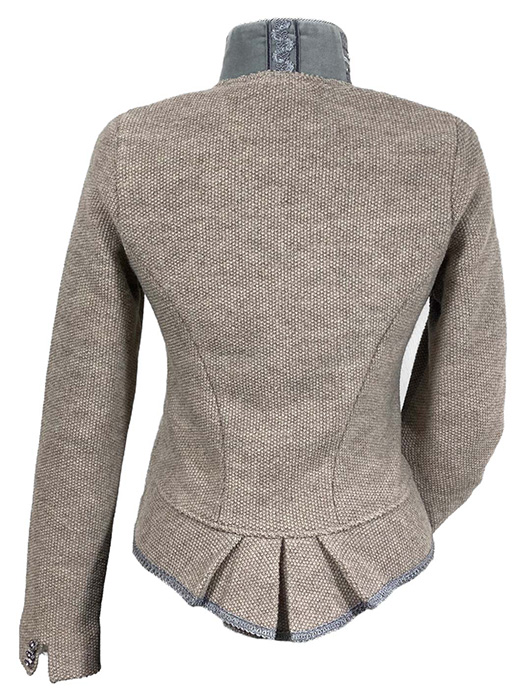 Die Strickjacke DaphneX, aus dem Hause Litzlfelder, in warmem Beige bringt sofort ein wohliges Gefühl, wie man es an klaren Herbstmorgen schätzt. Der feine Stehkragen mit hellgrauem Samt und edlen Borten verleiht einen Hauch Eleganz, während silberne Knöpfe vorne und an den Ärmeln charmant funkeln. Reine, pillingfreie Schurwolle aus dem Alpenraum sorgt für angenehme Wärme ohne Kratzen. Beim Spaziergang, im Büro oder beim Treff mit Freunden sitzt sie leicht, formstabil und bequem. Wer einmal in diese Qualität schlüpft, möchte sie nicht mehr missen.