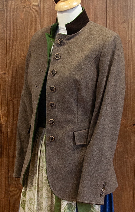 Weiterführende Links zu "Klassischer Damenjanker, hellbraun, Samtstehkragen, Bauer"